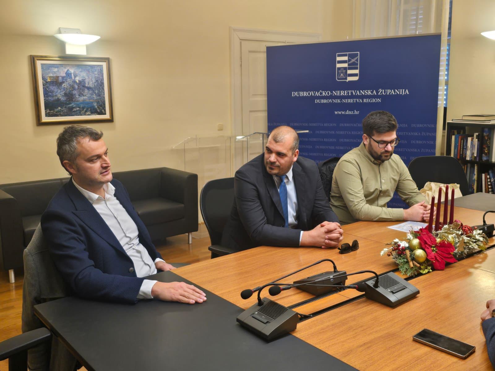 U Palači Ranjina župan Blaž Pezo i zamjenik župana Joško Cebalo primili su predstavnike HCPI-IS-a: voditelja Ispostave Dubrovnik Pava Arbulića, voditelja Ispostave Zagreb Marija Uroša te voditelja Ureda Ivana Kosaleca.