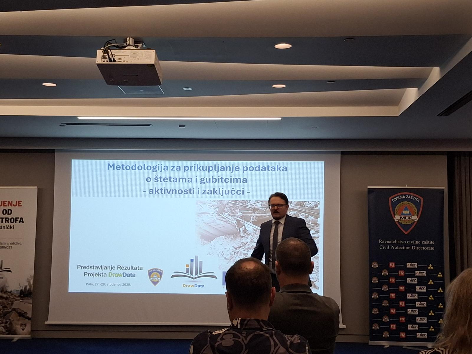 Hrvatski centar za potresno inženjerstvo sudjelovao je na završnoj konferenciji projekta DrawData, održanoj 27. i 28. studenoga 2025. u Puli u organizaciji Ravnateljstva civilne zaštite Ministarstva unutarnjih poslova Republike Hrvatske. Konferencija je predstavila ključne korake prema uspostavi koordiniranog sustava podizanja svijesti o važnosti smanjenja rizika od katastrofa te stvaranja jedinstvene nacionalne baze podataka o štetama.