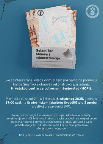 pozivamo sve zainteresirane kolege na promociju knjige Seizmičke obnove i rekonstrukcije, u izdanju Hrvatskog centra za potresno inženjerstvo (HCPI).